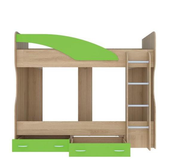 - Кровать оснащена лестницей шириной 332 мм по краям деталей из ЛДСП