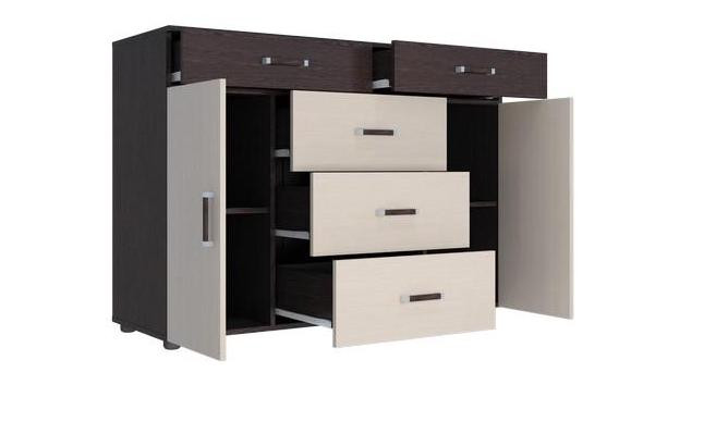 Комод Вега К-03 Венге/Дуб Молочный (Ш-1250 × В-910 × Г-449 мм)